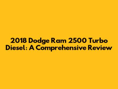 Hey guys! Let's dive deep into the 2018 Dodge Ram 2500 Turbo Diesel. This beast of a truck is known for its impressive towing capacity, robust engine, and overall reliability. If you're in the market for a heavy-duty pickup, the 2018 Ram 2500 is definitely one to consider. In this article, we'll cover everything from its specs and features to its performance and potential issues. So, buckle up and let's get started!