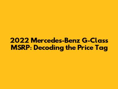Hey everyone! Ever wondered about the 2022 Mercedes-Benz G-Class MSRP? Well, you're in the right place! We're diving deep into the pricing of this iconic SUV, breaking down what affects the cost, and helping you understand where your money goes. The Mercedes-Benz G-Class, often called the G-Wagon, isn't just a vehicle; it's a statement. And as a statement piece, understanding its MSRP is crucial before you even think about stepping into a dealership. So, let's get started, shall we?