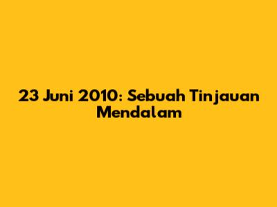 23 Juni 2010, sebagai sebuah tanggal, memiliki sejumlah peristiwa penting yang patut untuk dicatat. Meskipun mungkin tidak ada satu pun peristiwa yang secara langsung mengubah dunia dalam semalam, namun kombinasi dari berbagai kejadian pada hari itu memberikan gambaran yang menarik tentang bagaimana dunia beroperasi dan berkembang.
