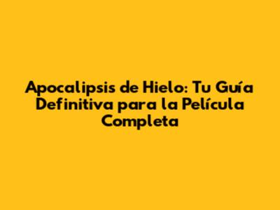 - ¿Dónde puedo ver "Apocalipsis de Hielo" legalmente? Puedes verla en plataformas de streaming como Netflix (si está disponible en tu región), o alquilar/comprar en plataformas digitales como Google Play y Apple TV.