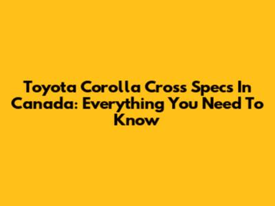 Toyota Corolla Cross Specs In Canada: Everything You Need To Know