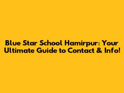 Contacting Blue Star School Hamirpur: All the Numbers You Need!