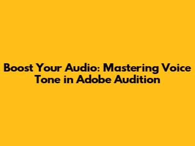 Boost Your Audio: Mastering Voice Tone In Adobe Audition