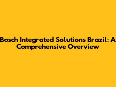 Bosch Integrated Solutions In Brazil: Comprehensive Guide
