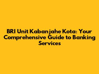 Unveiling BRI Unit Kabanjahe Kota: What You Need to Know