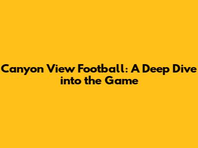 Canyon View Football: A Deep Dive Into The Game