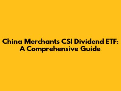 Hey guys! Today, we're diving deep into the China Merchants CSI Dividend ETF. If you're looking to invest in the Chinese market and want a steady stream of dividends, this ETF might just be what you're looking for. We'll break down what it is, how it works, and whether it's a good fit for your investment portfolio. So, grab a cup of coffee, and let's get started!