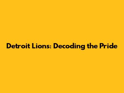 Detroit Lions: The Pride of Detroit