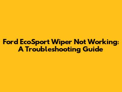 EcoSport Wiper Woes: Troubleshooting & Fixes