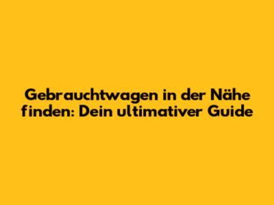 Hey Leute! Ihr seid auf der Suche nach einem Gebrauchtwagen in der Nähe? Super! Ob ihr nun euer erstes Auto kauft oder einfach nur ein Upgrade braucht, der Gebrauchtwagenmarkt bietet eine riesige Auswahl. Aber wo fängt man an? Keine Sorge, ich helfe euch dabei, den perfekten fahrbaren Untersatz zu finden. In diesem Guide zeige ich euch alles, was ihr wissen müsst, um stressfrei ein Auto zu kaufen und dabei noch ein echtes Schnäppchen zu machen. Wir schauen uns die besten Gebrauchtwagenportale an, geben Tipps zur Fahrzeugbewertung und erklären, worauf ihr bei der Probefahrt achten solltet. Also, anschnallen und los geht's!