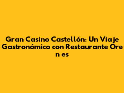 ¿Por Qué Elegir Restaurante Ore n es en el Gran Casino de Castellón?