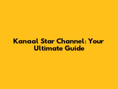 Kanaal Star Channel: Your Ultimate Guide
