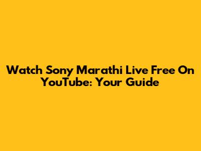 Watch Sony Marathi Live Free On YouTube: Your Guide