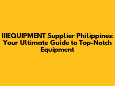 IIIEQUIPMENT Supplier In The Philippines: Your Ultimate Guide