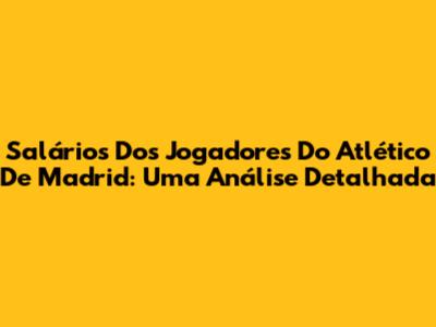 Salários Dos Jogadores Do Atlético De Madrid: Uma Análise Detalhada