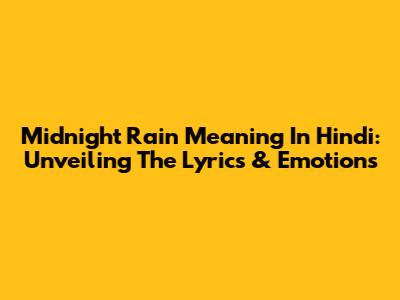 Midnight Rain Meaning In Hindi: Unveiling The Lyrics & Emotions