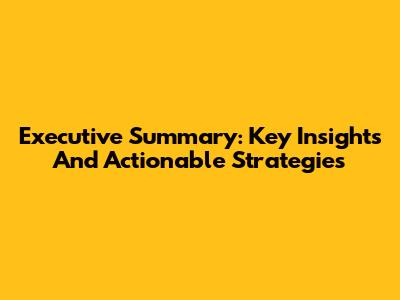 Executive Summary: Key Insights And Actionable Strategies