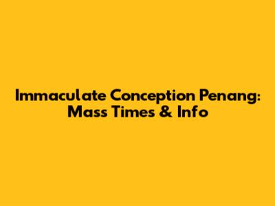 Immaculate Conception Penang: Mass Times & Info