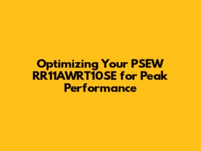 Optimizing Your PSEW RR11AWRT10SE For Peak Performance