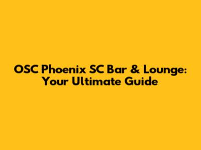 OSC Phoenix SC Bar & Lounge: Your Ultimate Guide