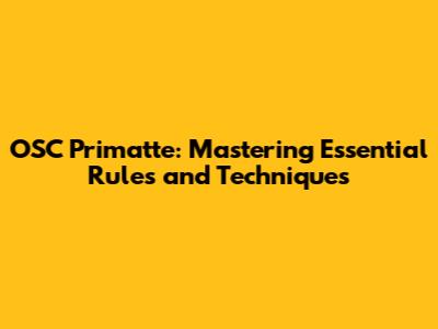 OSC Primatte: Mastering Essential Rules And Techniques