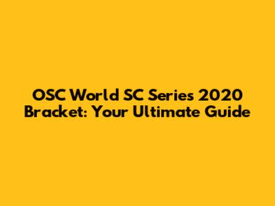 OSC World SC Series 2020 Bracket: Your Ultimate Guide