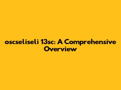 Oscseliseli 13sc: A Comprehensive Overview