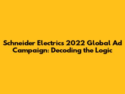 Hey guys, let's dive into the fascinating world of Schneider Electric's 2022 global ad campaign! We're talking about a campaign that wasn't just about pretty pictures and catchy slogans; it was a strategic move designed to resonate with a global audience. The core of this campaign, as we'll explore, revolved around a specific logic – a carefully crafted narrative intended to position Schneider Electric as a leader in a rapidly evolving technological landscape. This analysis will break down the campaign's key elements, from its core messaging and target audience to its execution across various media platforms. We'll also unpack the underlying logic that drove the campaign's strategies and goals, providing you with a comprehensive understanding of its design and impact. Get ready to explore the innovative approach Schneider Electric took, and discover the elements that shaped its success. So, without further ado, let’s get started and unravel the complexities of this advertising initiative!