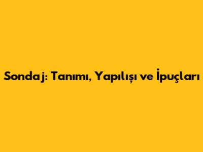 Sondaj, kısaca, yeryüzünde veya yeryüzünün altında bulunan kaynaklara ulaşmak amacıyla yapılan bir işlemdir. Genellikle su, petrol, doğal gaz gibi yer altı kaynaklarını bulmak ve çıkarmak için kullanılır. Ancak, sondajın kullanım alanları oldukça geniştir. Jeotermal enerji elde etmek, maden aramak, zemin etüdü yapmak gibi farklı amaçlarla da sondaj yapılabilir. Sondaj işlemi, özel ekipmanlar ve uzmanlık gerektiren karmaşık bir süreçtir.