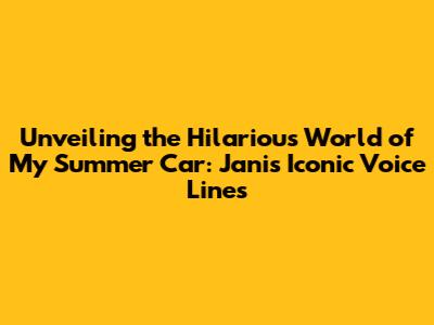 Hey guys, have you ever found yourself knee-deep in engine grease, desperately trying to get your clunker running in My Summer Car? If you have, chances are you've also had the pleasure of hearing the legendary Jani and his unforgettable voice lines. This game is a unique gem, a sandbox of automotive chaos, and Jani's commentary is the cherry on top. He's not just a character; he's an experience. We're going to dive deep into the world of Jani, exploring his most memorable quotes and why they resonate so deeply with players. Let's get started!