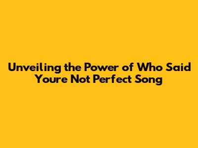 Unveiling The Power Of 'Who Said You're Not Perfect' Song