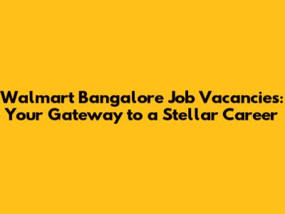 Unveiling the Opportunities at Walmart Bangalore
